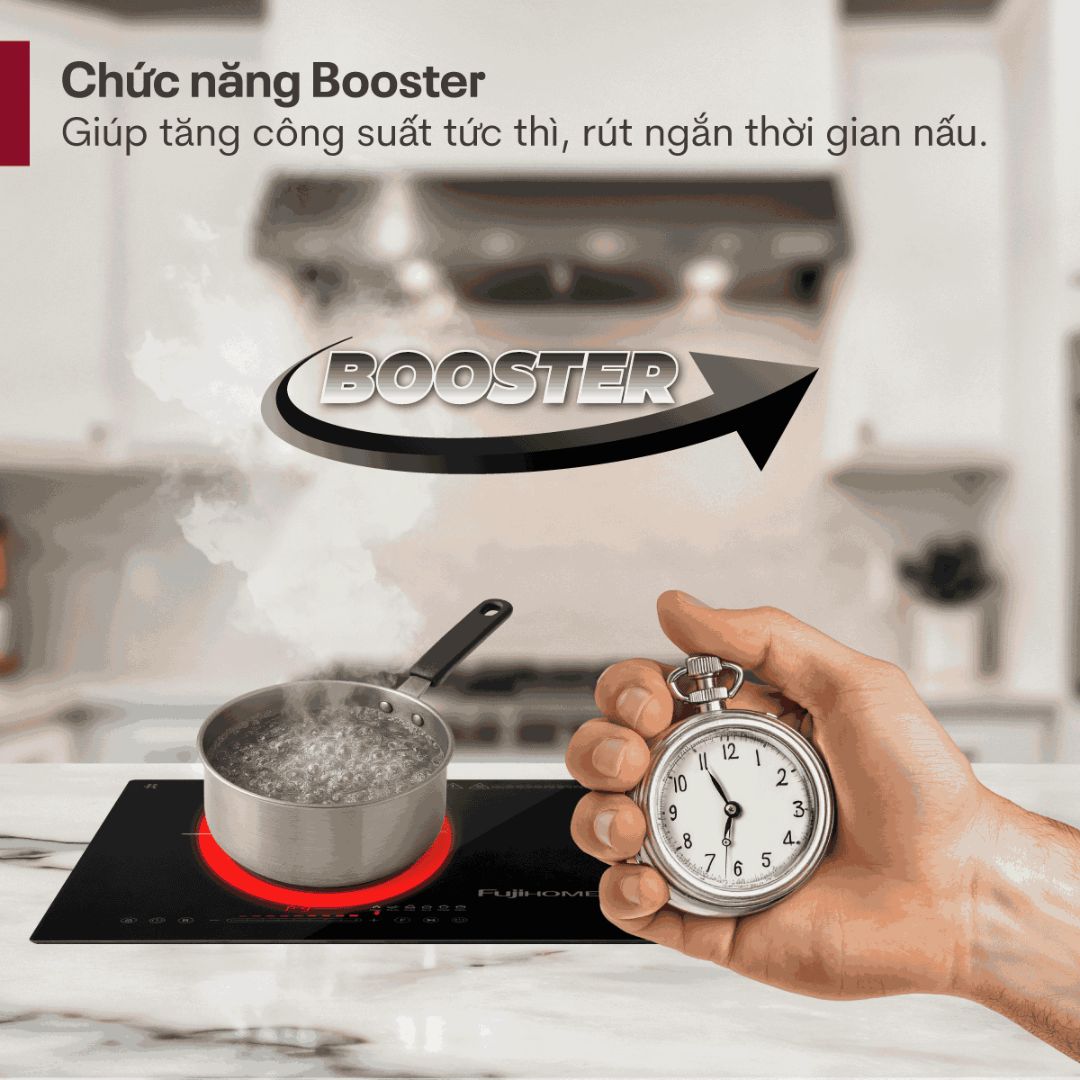 Chức năng Booster siêu tốc: Rút ngắn thời gian đun sôi nước, nấu canh hay chiên xào.