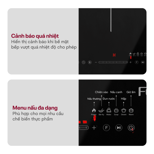 Chức năng tạm dừng (Pause): Cho phép dừng bếp tạm thời và tiếp tục nấu mà không cần cài đặt lại.