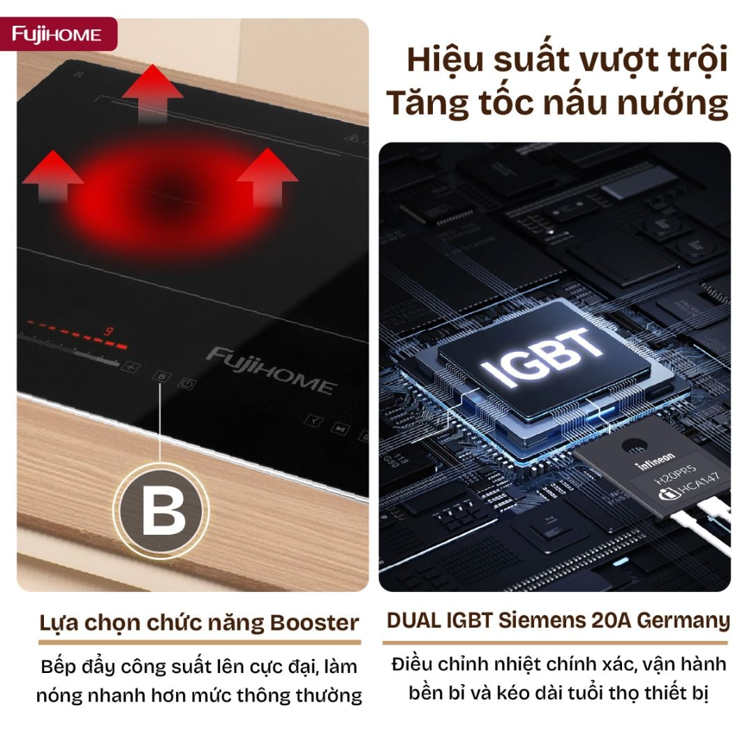 Chức năng Booster siêu tốc: Gia tăng công suất tức thì, giúp đun sôi nước, nấu canh hay chiên xào chỉ trong thời gian ngắn, tiết kiệm tối đa thời gian bếp núc.