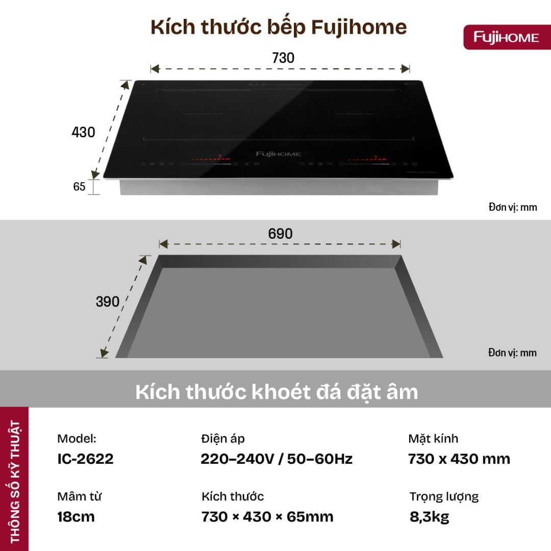 Thông Số Kỹ Thuật Bếp Từ Đôi Fujihome IC2622