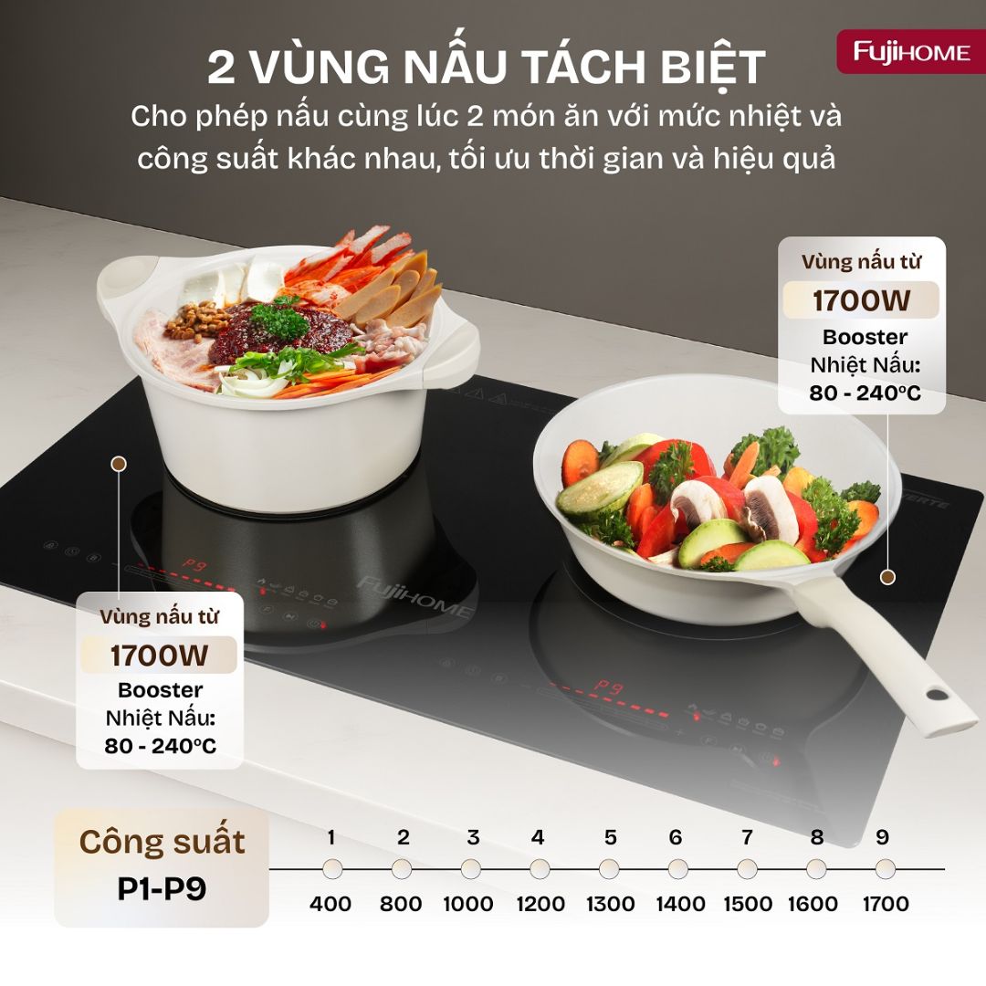 Trong kỷ nguyên bếp thông minh, Bếp từ đôi Fujihome IC2623 chính là lựa chọn hoàn hảo cho những gia đình yêu thích tốc độ nấu nướng nhanh, an toàn tuyệt đối và thiết kế sang trọng. Sản phẩm được phát triển dựa trên công nghệ hiện đại, tối ưu hóa hiệu suất, tiết kiệm năng lượng và nâng tầm trải nghiệm bếp núc.