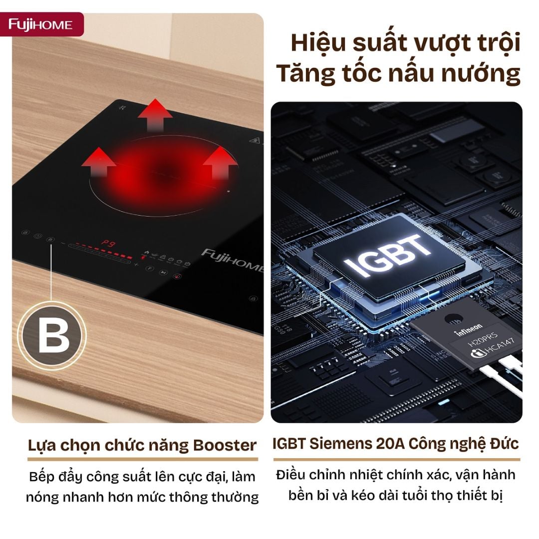 Chức năng Booster siêu tốc: Tăng công suất tức thì, đun sôi nước, chiên, xào hoặc hầm thực phẩm chỉ trong thời gian ngắn.
