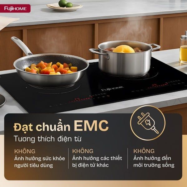 Đặc biệt, bếp đạt chuẩn EMC (Electromagnetic Compatibility) và CE châu Âu, đảm bảo không gây nhiễu đến các thiết bị điện tử khác trong nhà.