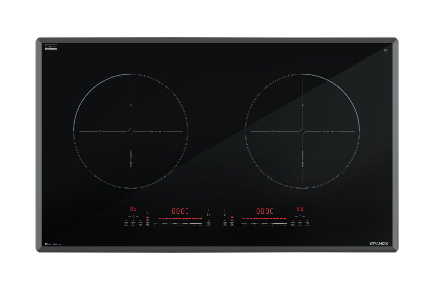 Bếp từ GX IP789Lux sở hữu mặt kính EURO Platinum vát 4 cạnh, kết hợp viền hợp kim nhôm Nano màu Titan cao cấp, không chỉ mang đến vẻ đẹp sang trọng mà còn bảo vệ bề mặt bếp khỏi trầy xước và chịu nhiệt cực kỳ tốt.