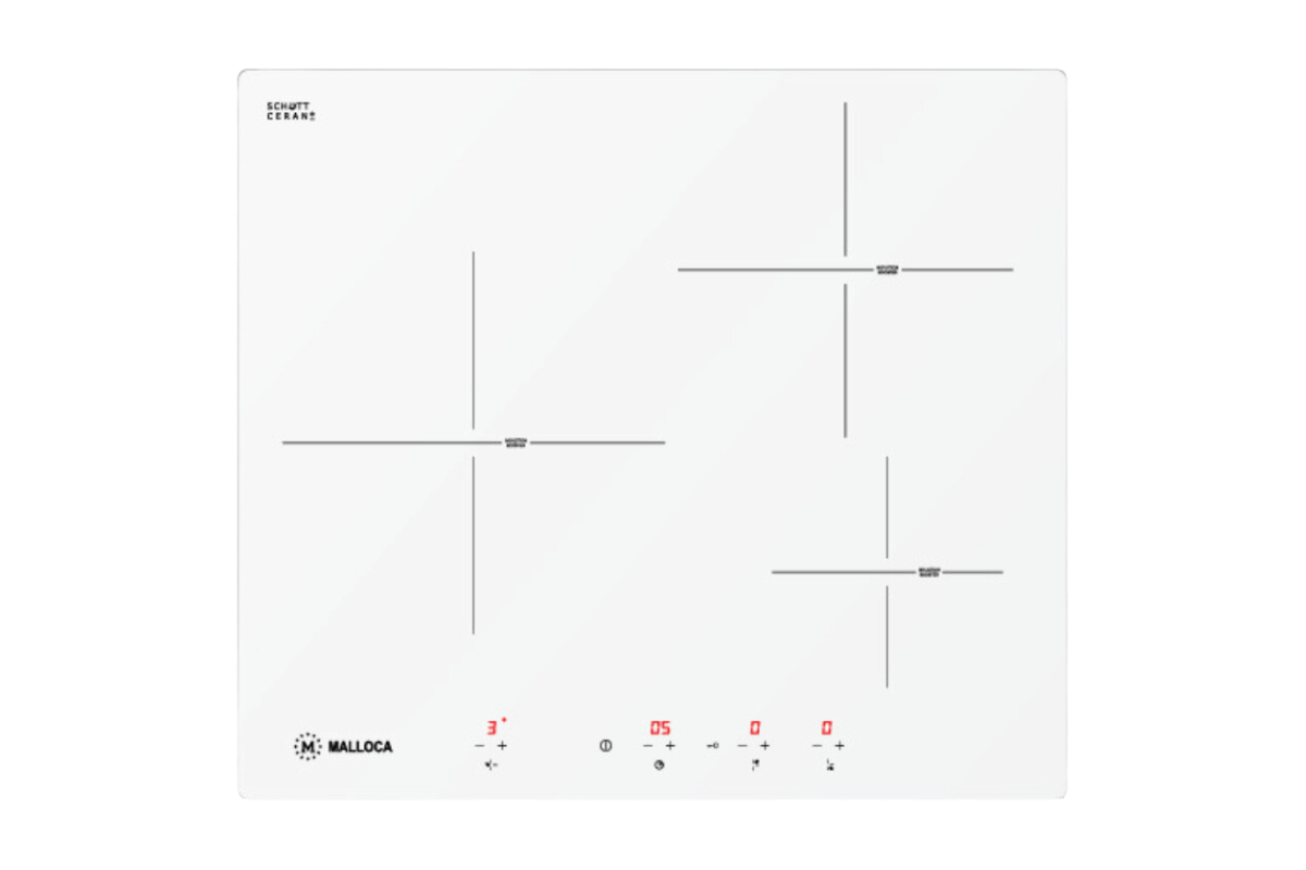 Bếp từ Malloca MI 593 W được nhập khẩu nguyên chiếc từ Tây Ban Nha, nổi bật với kiểu dáng vuông vức sang trọng, thiết kế lắp âm gọn gàng, tối ưu không gian. Điểm nhấn đặc biệt là mặt kính Schott Ceran màu trắng cao cấp đến từ Đức, không chỉ chống trầy xước, chịu lực và sốc nhiệt tốt mà còn tạo nên vẻ đẹp thanh thoát, sang trọng cho không gian bếp hiện đại.