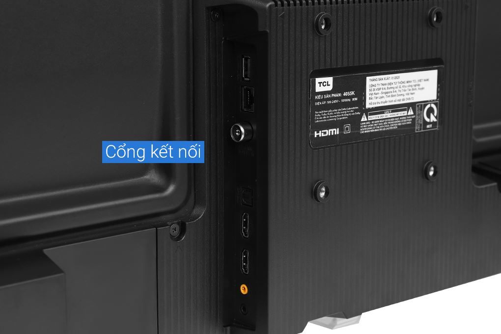 Google Tivi TCL 40S5K hỗ trợ đầy đủ WiFi, Bluetooth 5.0, các cổng HDMI, USB giúp kết nối dễ dàng với loa thanh, tay cầm chơi game, ổ cứng hoặc các thiết bị ngoại vi khác.