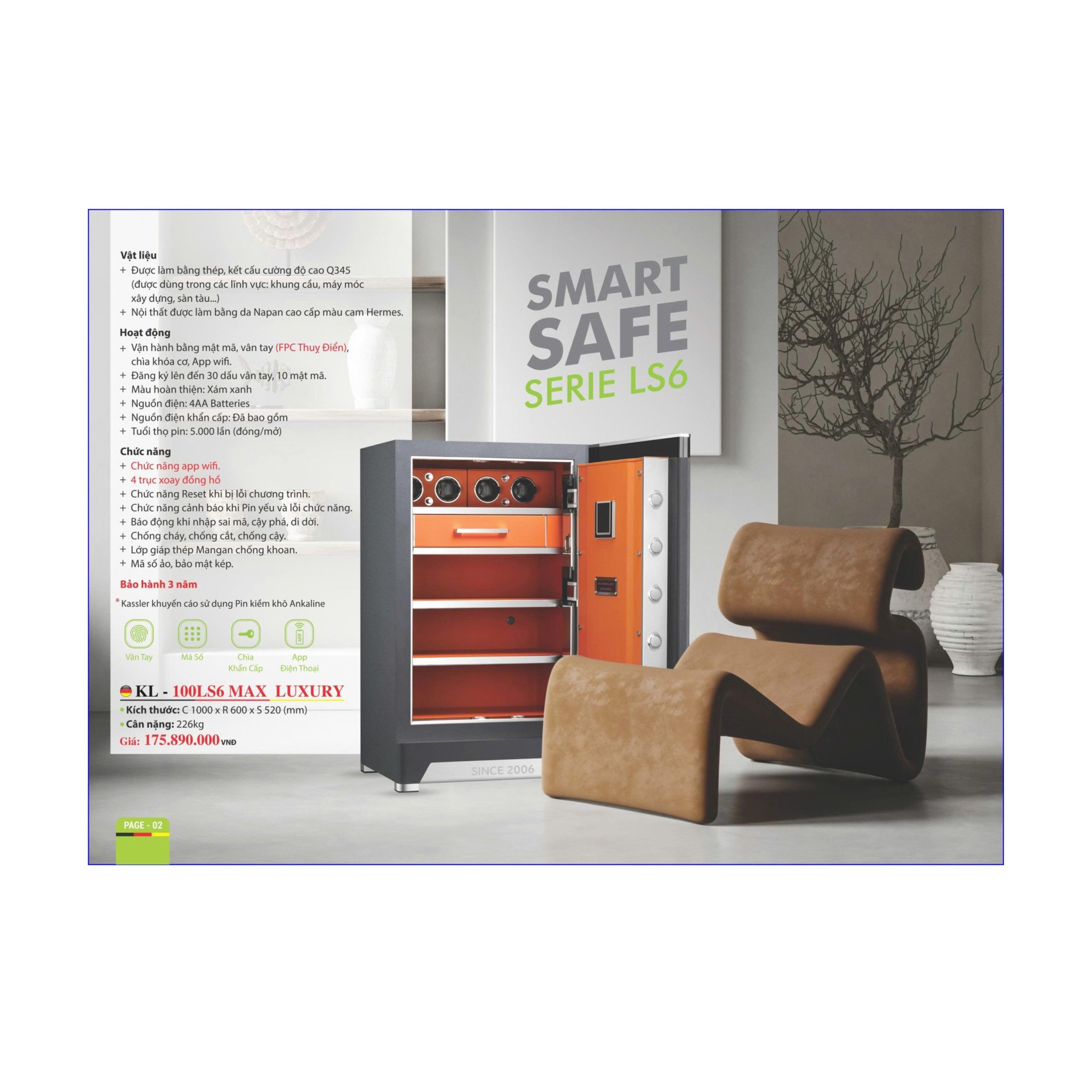 Mở khóa bằng mật mã, vân tay FPC Thụy Điển, chìa cơ, App WiFi.