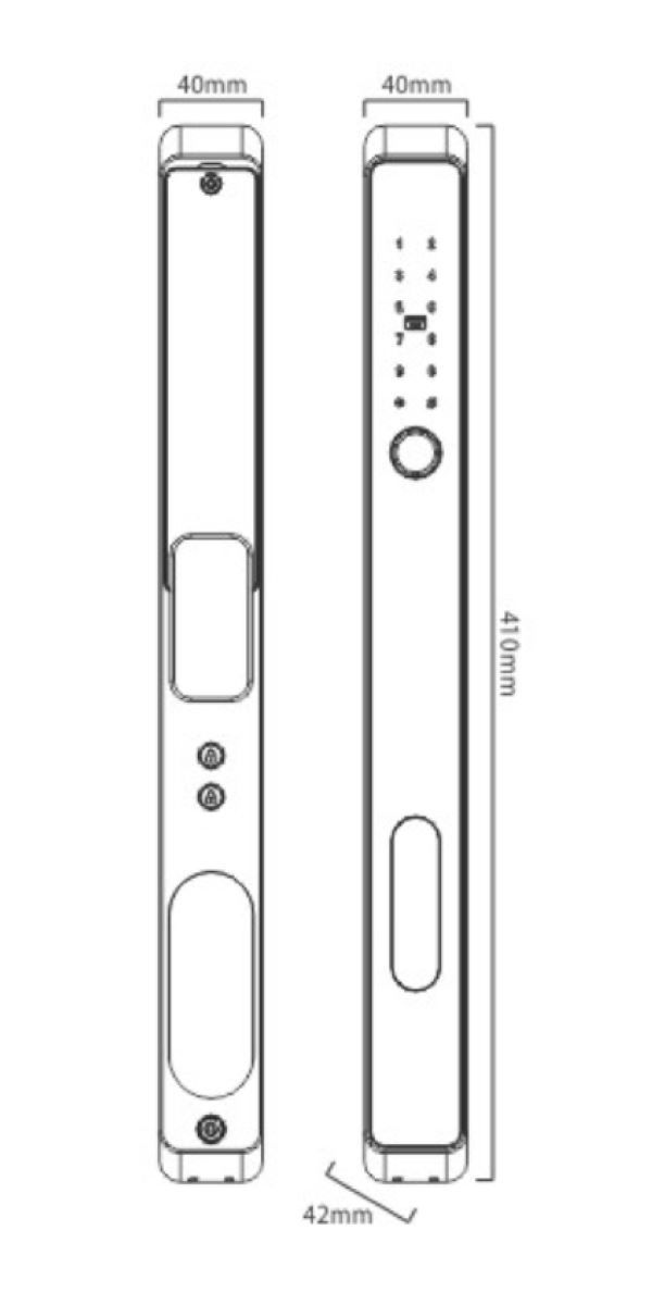 - Kích thước thân khóa ngoài: R 40 XC 410 x D 42mm