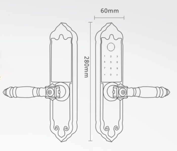- Kích thước: Thân khóa ngoài có kích thước R 60 x C 280 x D 34mm, phù hợp với nhiều loại cửa khác nhau.