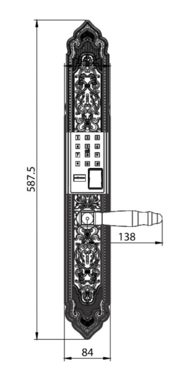 - Kích Thước Thân Khóa Ngoài: R 84,5 x C 695 x D 35 mm, phù hợp với các cửa đại sảnh và các cửa lớn cần bảo mật cao.