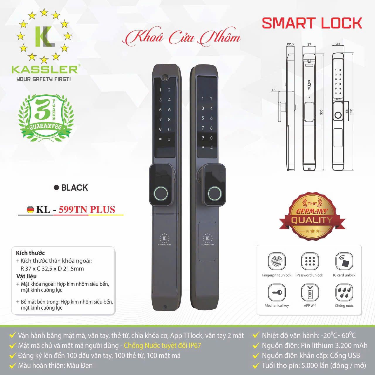 Thông số kỹ thuật khóa vân tay Kassler KL-599TN
