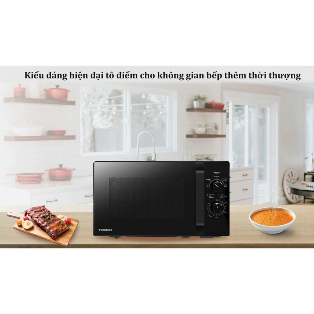 Lò vi sóng Toshiba MW2-MM20P(BK) sở hữu màu đen trang nhã, đường nét tinh tế, dễ dàng hài hòa với mọi phong cách không gian bếp. Dung tích 20 lít cho phép đặt vừa gà nguyên con khoảng 1 kg, đáp ứng tốt nhu cầu nấu nướng cơ bản hằng ngày.