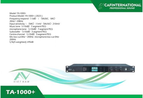 Vang số CAF TA-1000+ (2023) là dòng thiết bị xử lý âm thanh chuyên nghiệp, phù hợp cho dàn karaoke cao cấp, hội trường và sân khấu. Với khả năng tinh chỉnh âm thanh chi tiết, TA-1000+ mang đến trải nghiệm âm thanh sống động, trong trẻo và chuẩn xác.