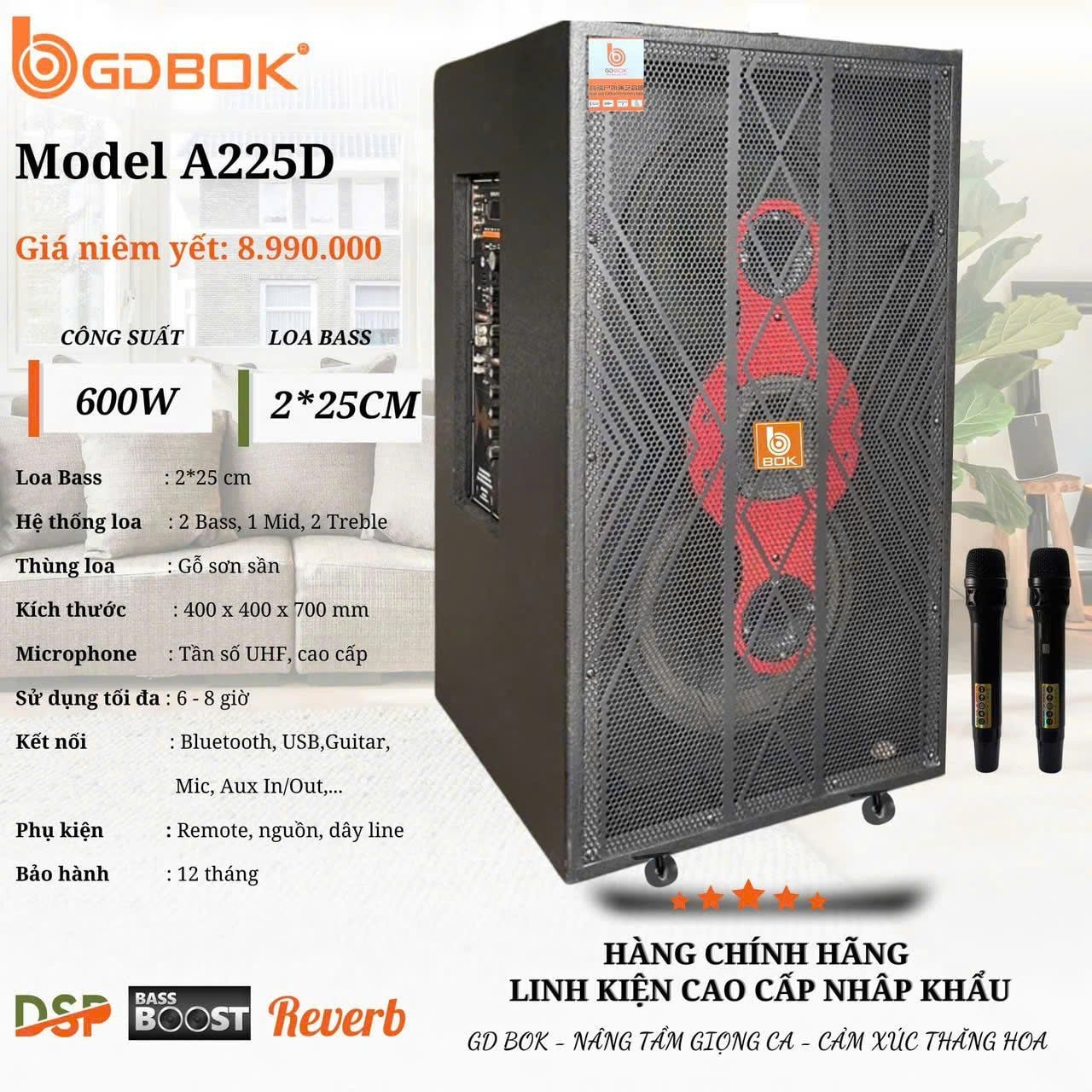 Loa Kéo GD BOK A225D – Công Suất 600W, Loa Kép Bass 25cm, Bùng Nổ Mọi Sự Kiện