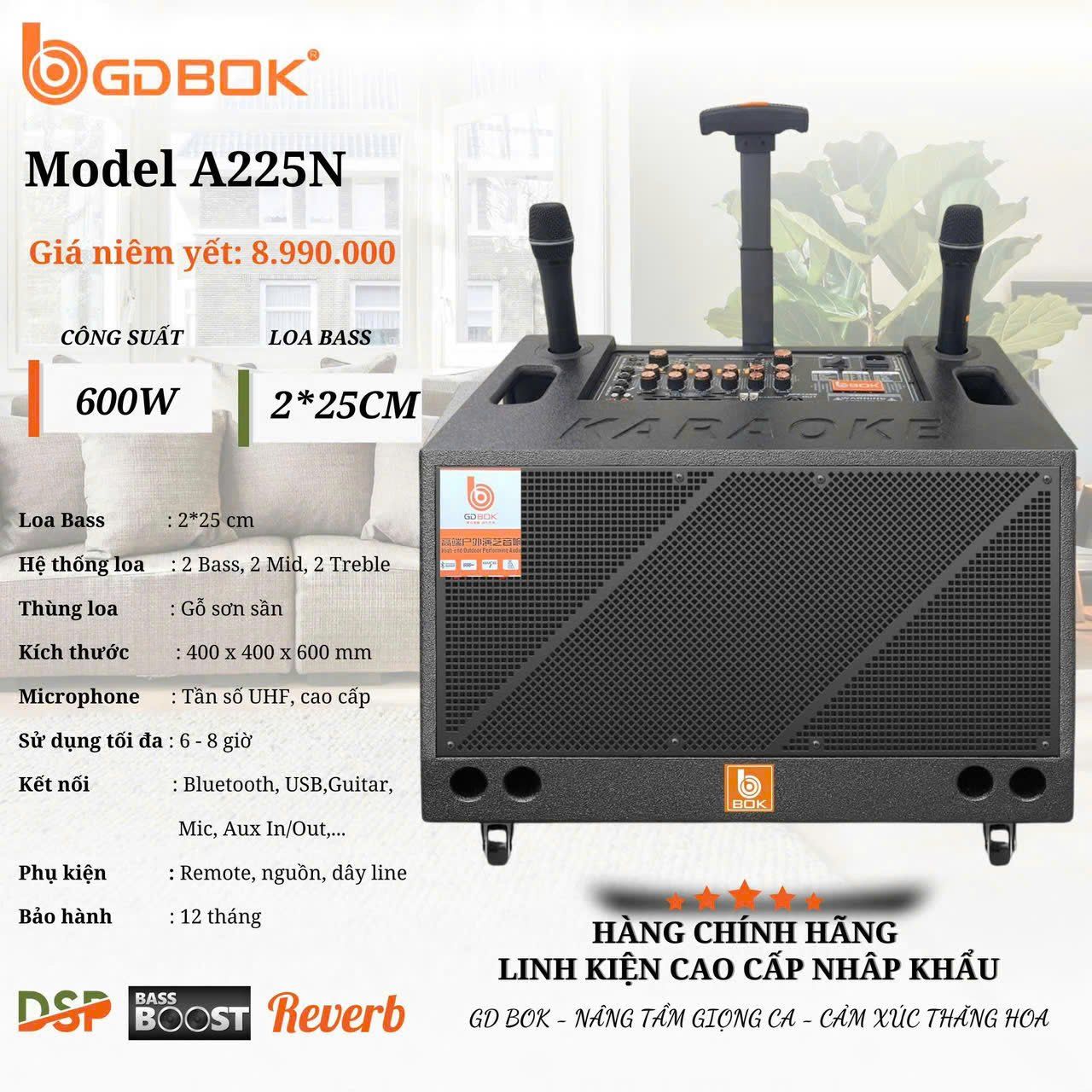 GDBOK A225N là lựa chọn hoàn hảo dành cho những ai yêu cầu một dàn âm thanh mạnh mẽ, đa năng, độ bền cao và hiệu suất vượt trội trong mọi hoàn cảnh sử dụng.