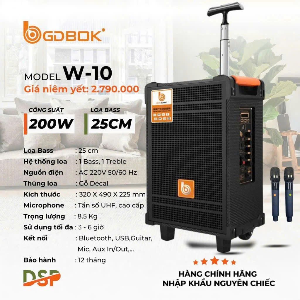 Loa Kéo GDBOK W-10 – Công Suất 200W, Bass 25cm, Âm Thanh Sống Động