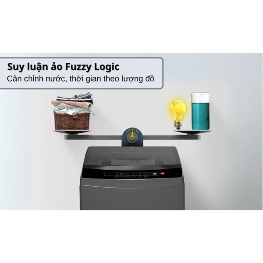Nhờ công nghệ Fuzzy Logic, máy có khả năng tự động xác định khối lượng quần áo, từ đó điều chỉnh lượng nước và thời gian giặt phù hợp. Tính năng này không chỉ giúp tiết kiệm nước, điện mà còn đảm bảo hiệu quả giặt sạch cao nhất cho từng mẻ giặt.