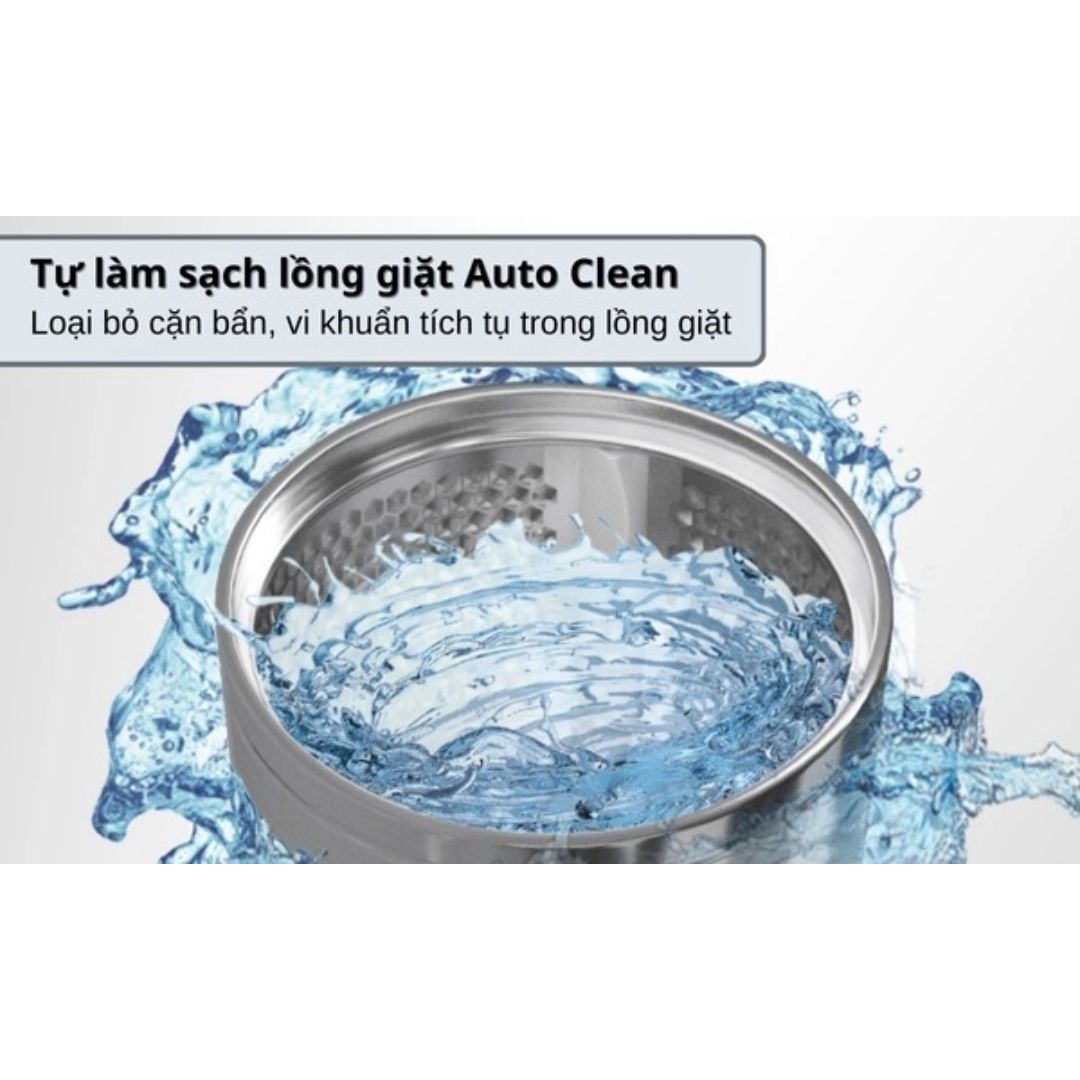 Tính năng Auto Clean giúp máy tự động vệ sinh lồng giặt, loại bỏ vi khuẩn, cặn bẩn và mùi hôi tích tụ sau thời gian dài sử dụng. Nhờ đó, lồng giặt luôn sạch sẽ, đảm bảo quần áo sau khi giặt luôn thơm tho và an toàn cho làn da.