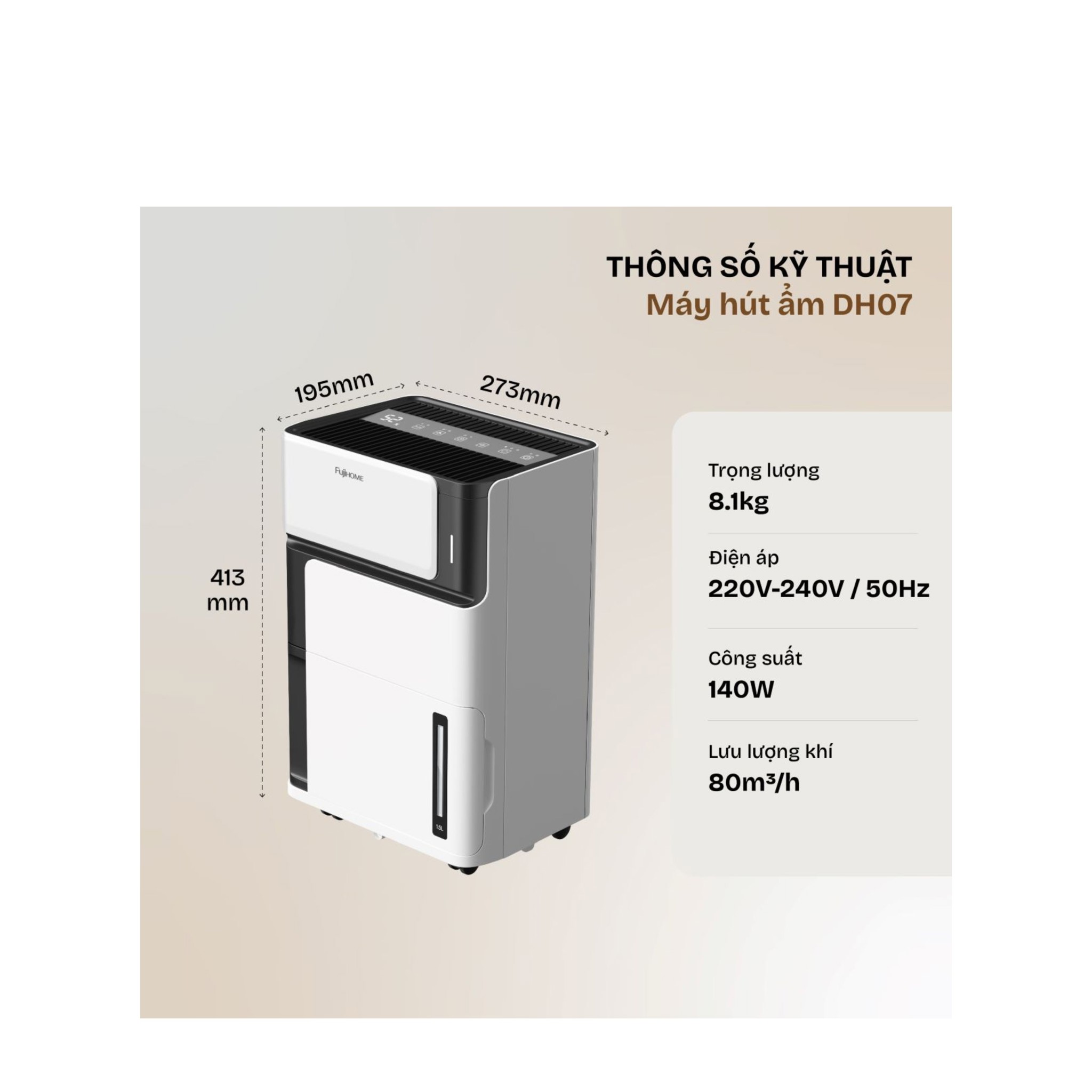 Nếu bạn đang tìm một chiếc máy hút ẩm dân dụng vừa nhỏ gọn – đẹp – hiệu quả – thông minh – tiết kiệm điện, thì Fujihome DH07 chính là lựa chọn hoàn hảo.
