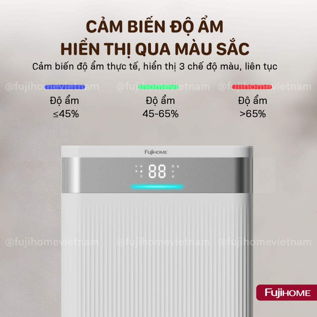 Đèn báo độ ẩm bằng màu sắc giúp người dùng kiểm soát chính xác tình trạng không khí: