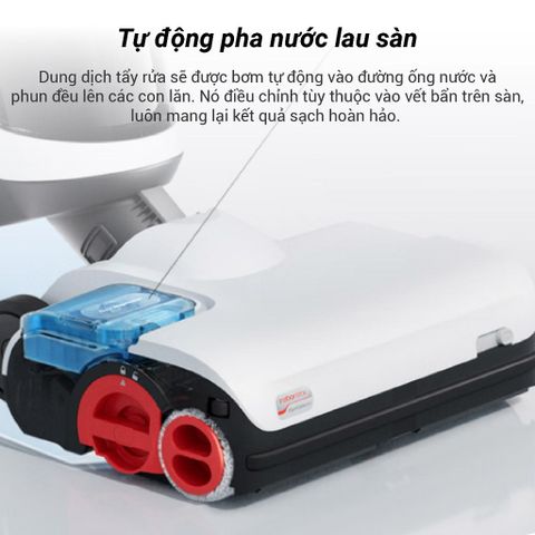 Tự pha nước lau sàn: Đảm bảo pha tỷ lệ nước lau phù hợp, không cần can thiệp thủ công.