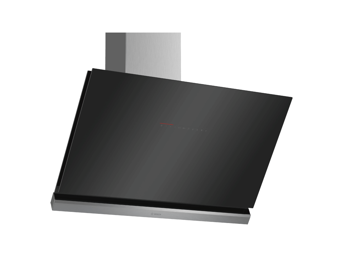 Máy hút mùi Bosch DWK98PR60B sở hữu thiết kế gắn tường kính vát với mặt kính đen bóng, mịn màng. Đây là sự kết hợp hoàn hảo giữa sự sang trọng và tính thẩm mỹ, giúp tôn lên vẻ đẹp của không gian bếp. Thân máy bằng thép không gỉ không chỉ mang lại độ bền cao mà còn dễ dàng vệ sinh, không bị bám vân tay hay gỉ sét, giúp máy luôn mới mẻ và bền đẹp theo thời gian.