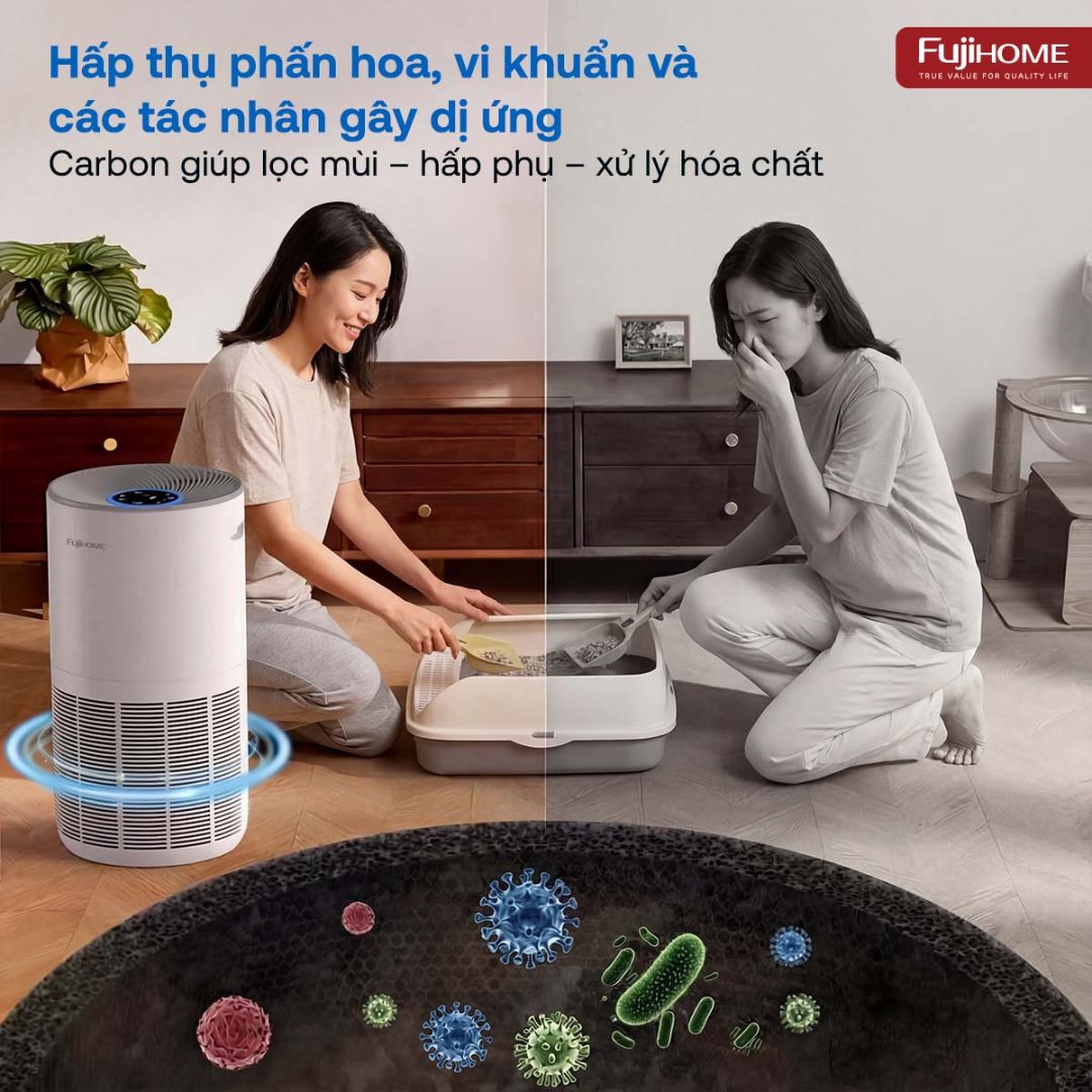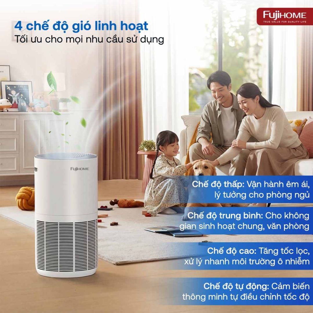 Trong thời đại ô nhiễm không khí ngày càng gia tăng, việc trang bị một thiết bị lọc không khí hiệu quả là điều cần thiết để bảo vệ sức khỏe gia đình. Fujihome AP5Grand Smart Air Purifier là model máy lọc không khí thông minh mới ra mắt năm 2026 của thương hiệu Fujihome, được tích hợp công nghệ cảm biến tiên tiến, động cơ Inverter DC motor tiết kiệm điện cùng khả năng kết nối WiFi điều khiển từ xa. Sản phẩm giúp loại bỏ bụi mịn, vi khuẩn, mùi khó chịu và các tác nhân gây dị ứng, mang đến bầu không khí trong lành cho không gian sống.