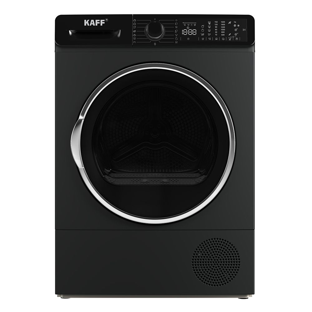 Khối lượng sấy khô 9 Kg: Với khả năng sấy khô đến 9 Kg quần áo, máy sấy Kaff KF-DR113L09BL phù hợp với các gia đình đông người hoặc có nhu cầu sấy nhiều quần áo một lần.