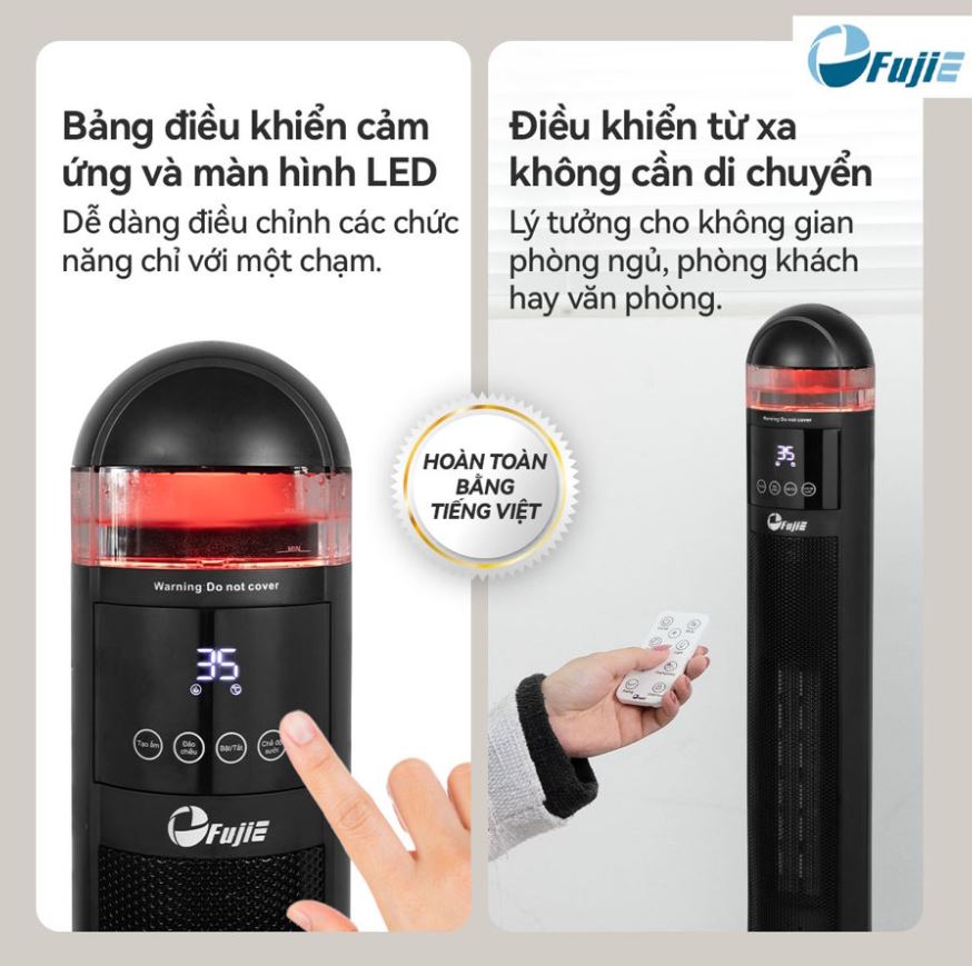 Máy sưởi gốm FujiE VH221 là lựa chọn lý tưởng cho mùa đông với khả năng sưởi ấm nhanh – bù ẩm – vận hành an toàn – tiết kiệm điện. Sở hữu công nghệ sưởi gốm PTC ceramic hiện đại, điều khiển bằng giọng nói tiếng Việt, hẹn giờ 12 giờ cùng thiết kế sang trọng, FujiE VH221 mang đến không gian sống ấm áp và tiện nghi cho mọi gia đình.