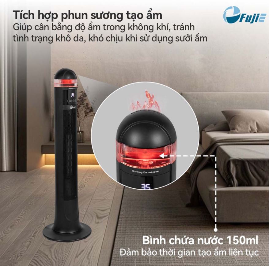 Khác với máy sưởi thông thường, FujiE VH221 có bình chứa nước 150ml, công suất tạo ẩm 50 ml/giờ giúp: