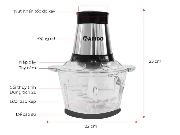 | Loại máy | Máy xay thịt đa năng Rapido |
