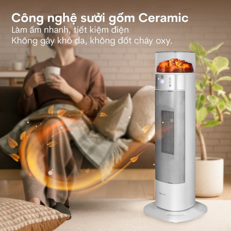 Ứng dụng công nghệ PTC Ceramic: tỏa nhiệt đều, không đốt cháy oxy, giữ độ ẩm tự nhiên, không gây khô da.