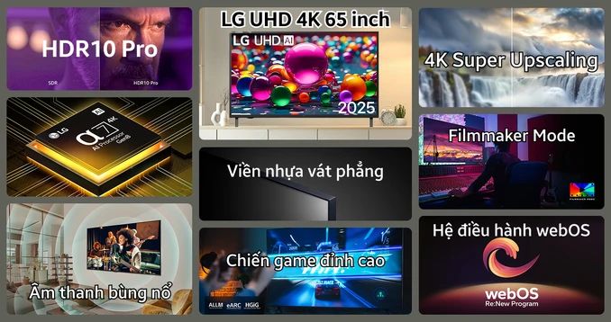 Smart Tivi LG UHD 4K 65 inch 2025 (65UA8450PSA) là lựa chọn hoàn hảo cho những ai yêu thích công nghệ, mong muốn sở hữu chiếc tivi thông minh với hình ảnh chuẩn 4K, âm thanh vòm sống động và khả năng kết nối đa thiết bị.