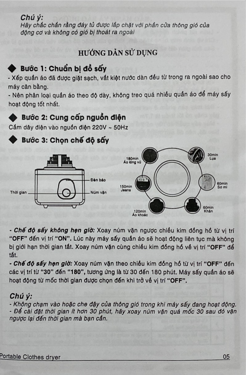 Điều chỉnh thời gian sấy phù hợp với từng loại vải.